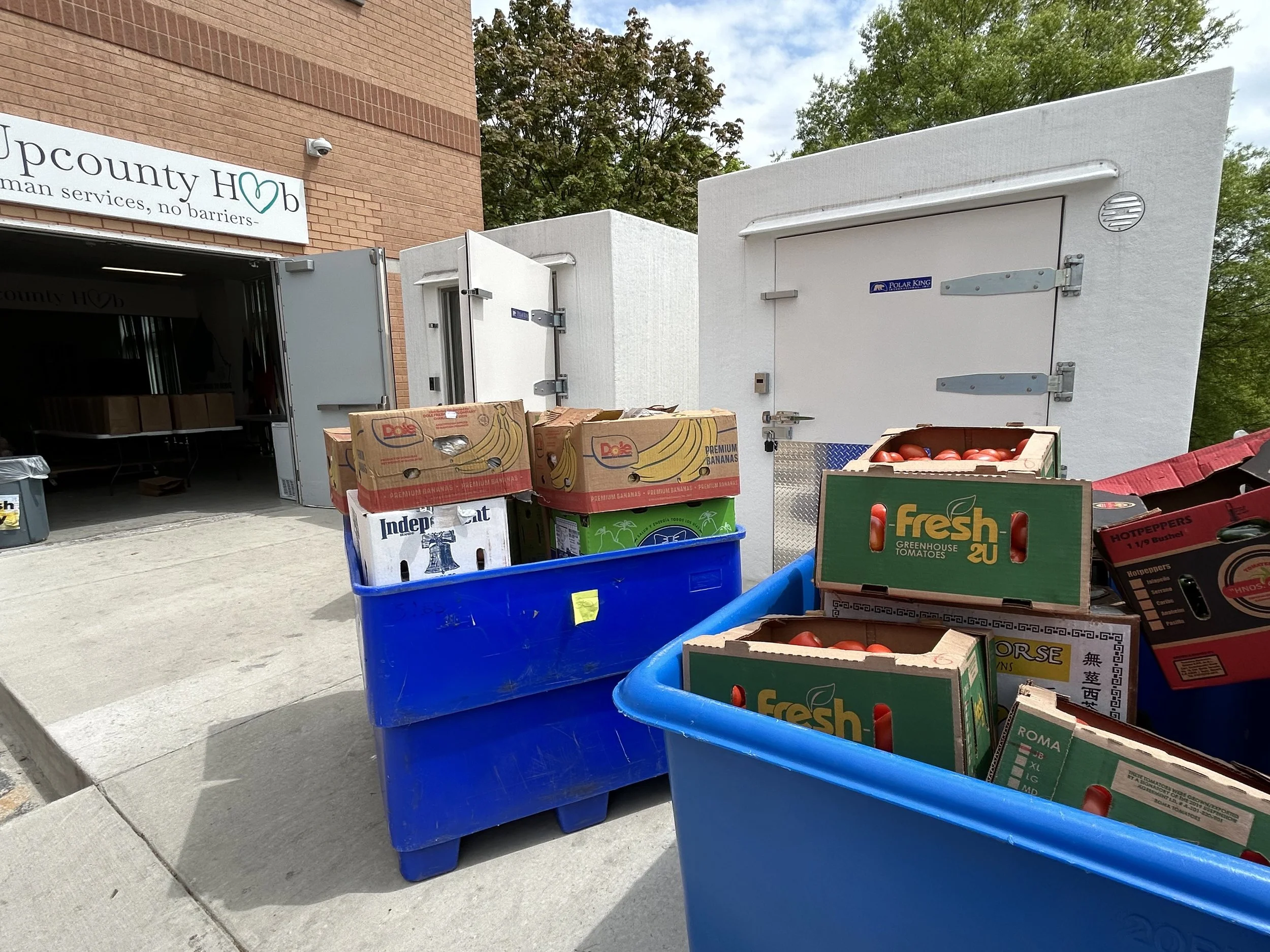 As we were unloading, a social worker from the local school system also arrived at the Hub. She watched in awe as over 1,500 lbs of food emerged from the Buddhist Relief van and into the Hub's big blue bins - fresh produce, rice, eggs, meat, jams, peanut butter and pistachios!