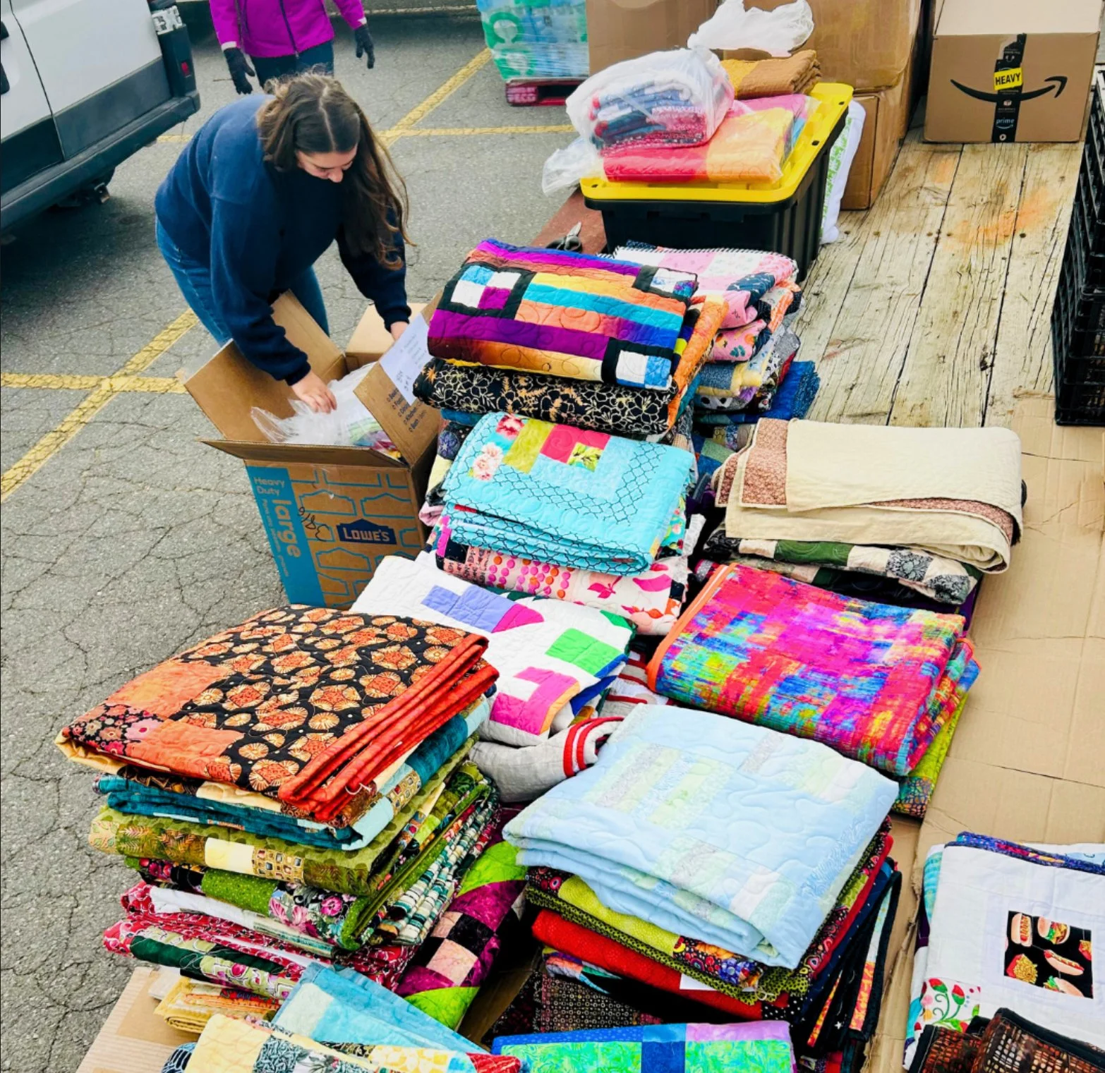 One the eve of Thanksgiving, Bounty and Soul partnered with Buddhist Relief for a joyous event: their annual Holiday Market. This year the market provided In addition to Thanksgiving meals and fresh produce this years market featured the added bonus this year of families being able to bring home heartfelt gifts with them, including beautiful quilts. With the organizational help of Luana from “eQuilter”, 323 hand made quilts made by people from across the country, were donated from all over the country to me on behalf of Buddhist Relief and Bounty and Soul. to the Holiday Market. The amount of care and love stitched into these quilts was unbelievable These quilts were unbelievable with the amount of care and love people put into them.Distributed to families in the Swannanoa and Black Mountain communities who suffered extensive home damage or completely lost their homes, each quilt was received with gratitude and in addition to being a source of inspiration and hope, they will also help to keep these families warm through the winter.