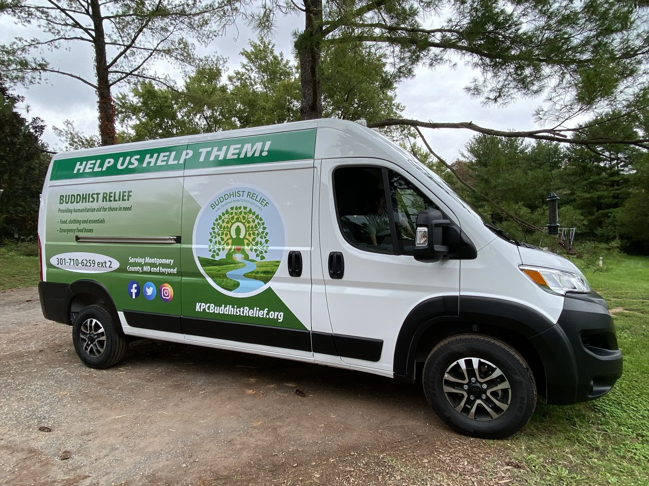 It started with a daily food box donation. Jetsunma Ahkon Lhamo donated a box of healthy nutritious food every day since the beginning of Covid. Her students noticed, became inspired, and together with partners and volunteers KPC Buddhist Relief donations have grown so much we needed a proper vehicle to safely transport them!